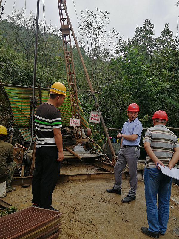 冉軍林一行到達項目部后,首先前往鉆機施工現場,與鉆探施工人員進行了現場交流,同時對鉆探施工過程中存在的安全隱患及綠色勘查工作中存在的問題提出了要求,要求項目部人員要加強監管力度,發現問題及時整改,確保絕對安全,施工完成后要按照綠色勘查相關要求對場地進行植綠恢復。