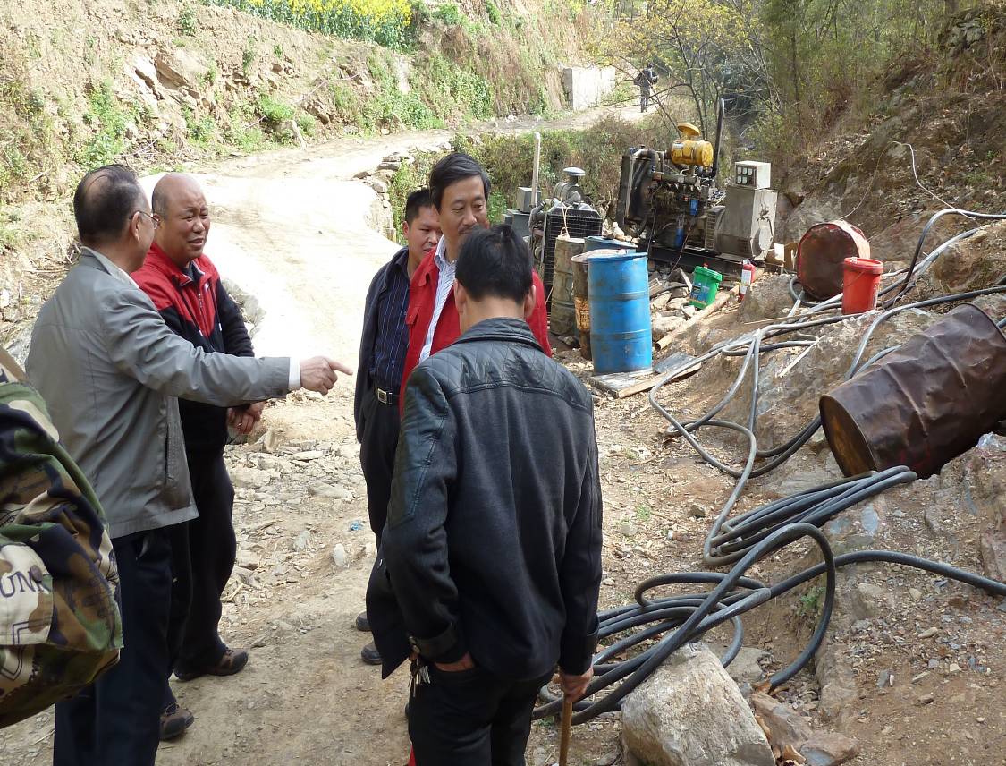 一大早,高隊長一行就來到了寧強縣南沙河基金項目駐地。在仔細聽取項目組負責同志的工作匯報后,深入現場對礦化較好的槽探工程進行了實地查看,叮囑項目組加快項目進度、認真分析研究地質現象、精心設計后續鉆探工作,確保項目順利延續。