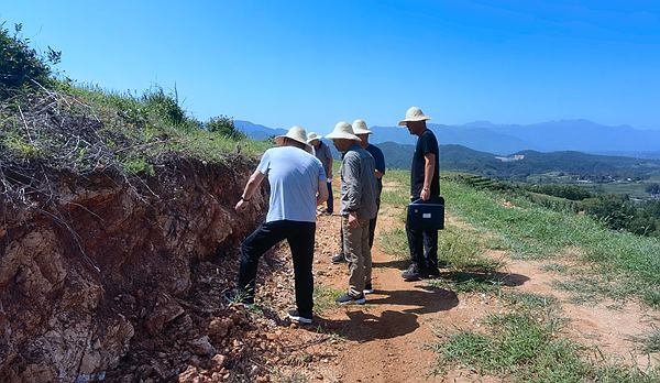 在野外施工現場,專家組認真檢查探槽、剝土等工程施工質量及綠色勘查情況,現場就礦體賦存狀態、控礦構造、礦化蝕變及下一步需要進一步查明的成礦因素等理論技術問題進行了深入討論和精心指導